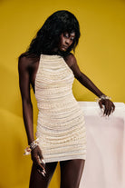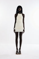The fashionista Gobi Dress from the Skyline Collection has a deep V-neckline and bare back, with leaf detailing in its construction and layers with a 3D effect, in relief applied to the length of its skirt. It has a tie at the back that provides comfort when wearing the dress. It comes with an off-white skirt lining for greater comfort in daily use and a lining fixed to the bust to prevent unwanted transparency.