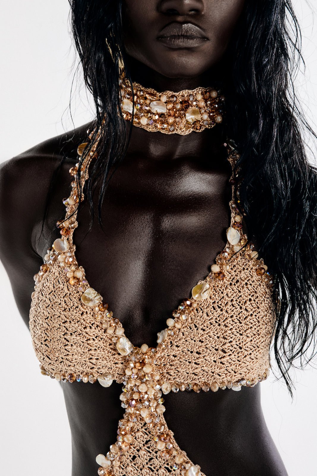Wear the Sapucaí Choker with the Sapucaí Top or with the Sahara Short Dress and strappy, flat or platform sandals.