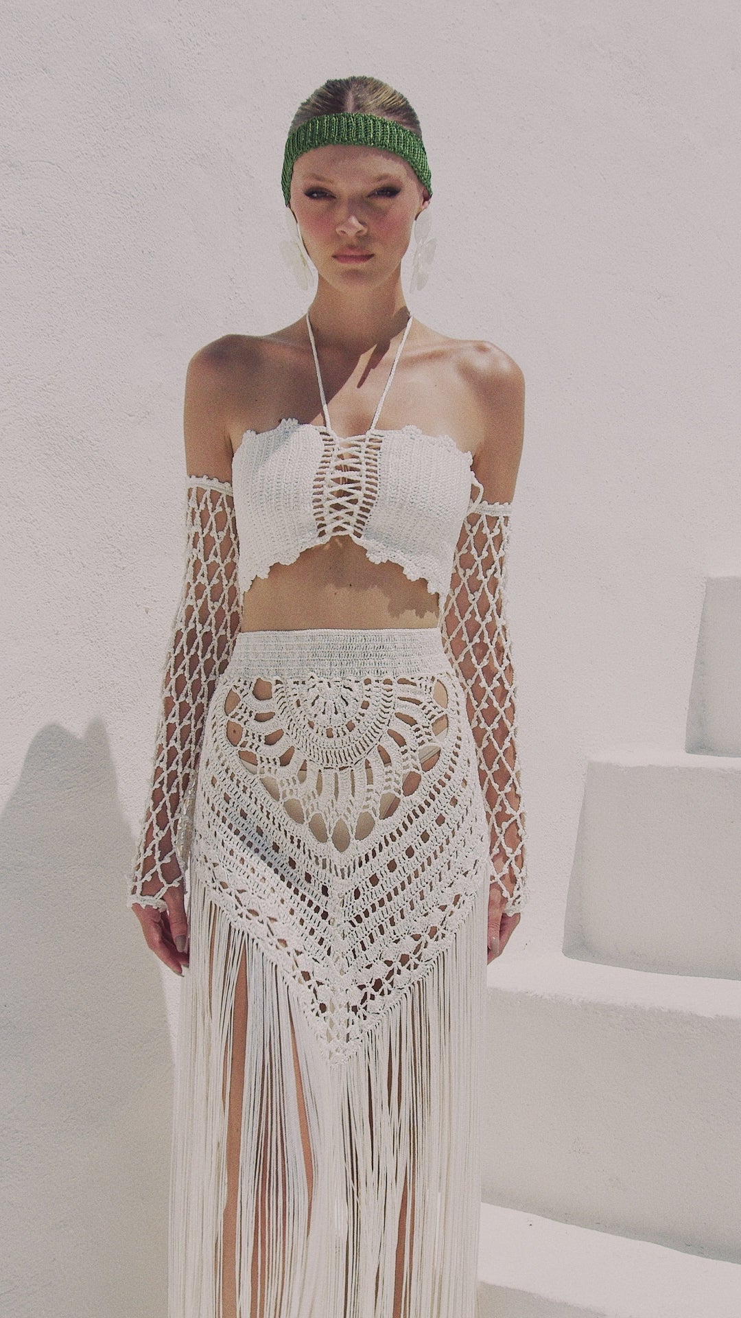 Wear the Be Tulum Golden Medium Skirt with Medium gold Tulum Top, to highlight and show style wear the Body Chain N1 necklace. use with o Medium Golden Zamas Top, Flat or Platform. For a more stylish look, use it with the medium golden Cropped Nomad, or the medium golden Cropped Jeri for a more chic and luxurious look. Use with the Medium Golden Hawaii Top and the Golden Shocker, for a look worthy of a Mayan queen.