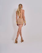 Beautiful skirt made with a crochet base and with crystal-studded chain applications.
