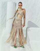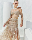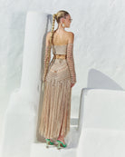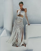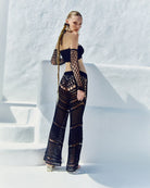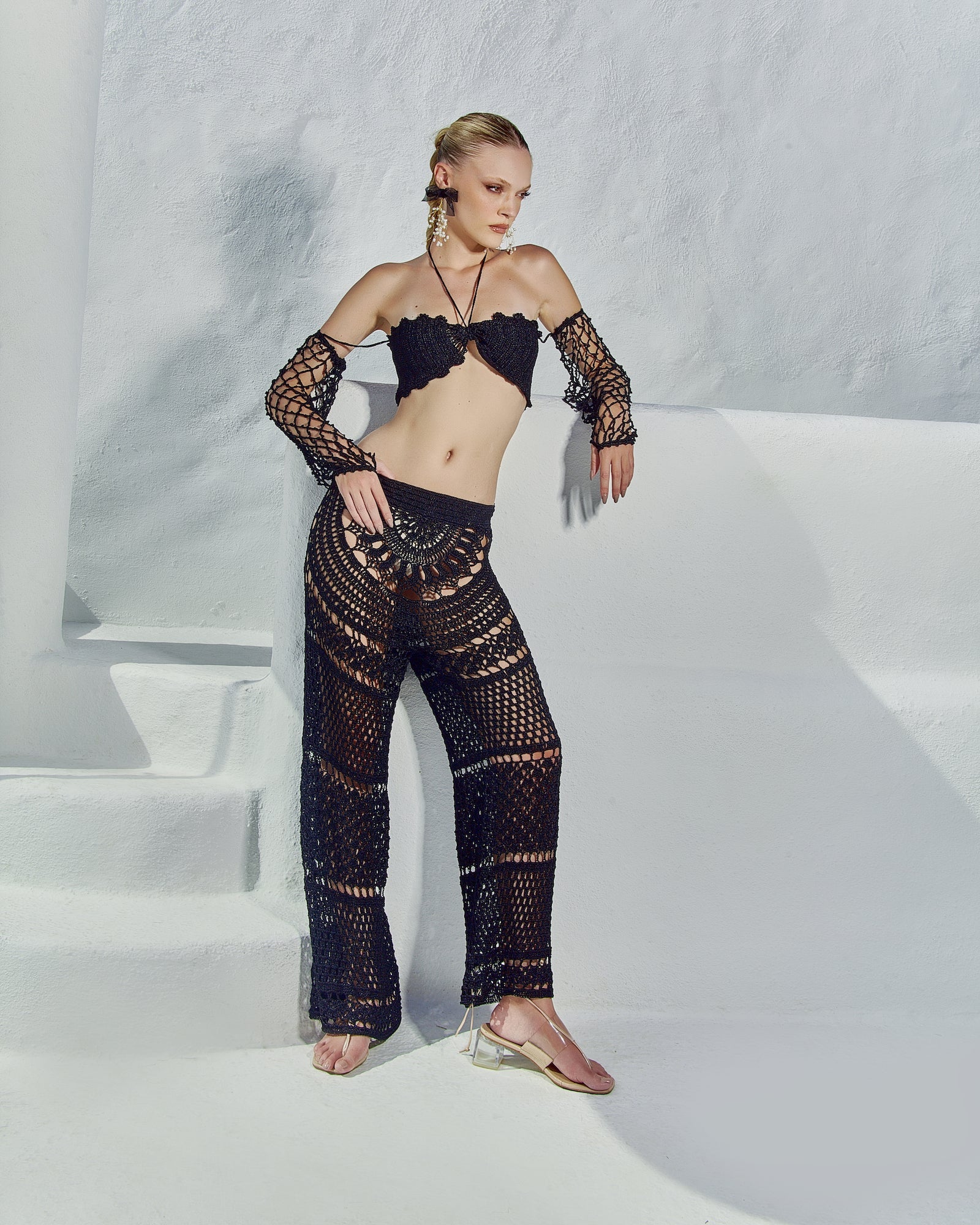 Versátil, el Top Nômade circula bien en producciones que van del día a la noche. Úsalo con el pantalón Be Tulum, la falda México, la falda Be Tulum o la falda Berlín con flats o sandalias. Tip del estilista: usa la manga como si fuera un guante, con el pulgar entre los hilos de ganchillo.
