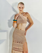 El Top Zamas es un top cropped halter ceñido al busto, elaborado por experimentadas y meticulosas artesanas con una mezcla de puntadas excepcionales, completamente tejido a ganchillo. Tiene forro que garantiza una mayor libertad. Su cierre se realiza mediante amarres en la espalda y el cuello. Top Zamas es la pieza ideal para un look cool chic.