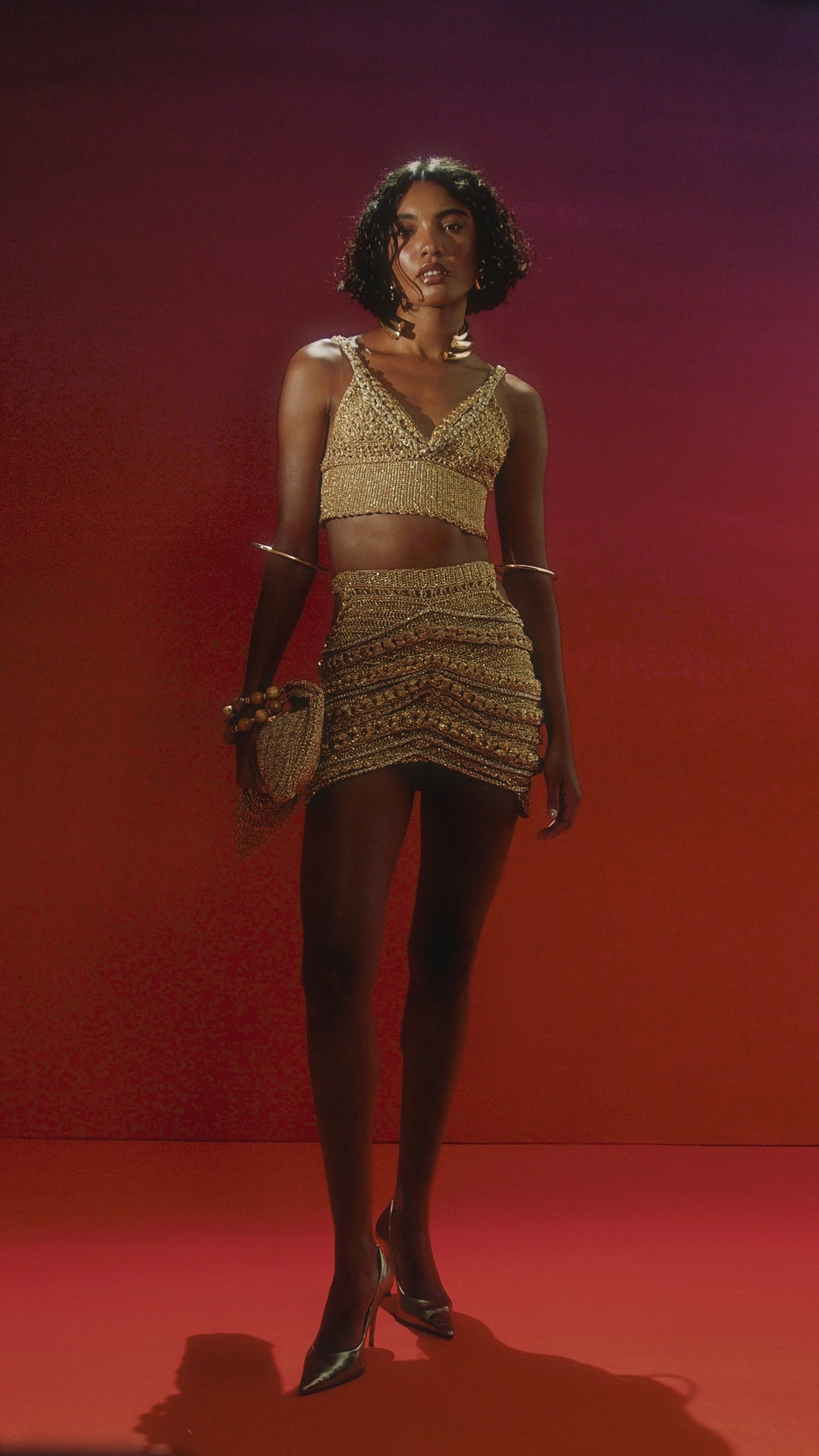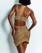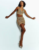 Lleva el Top Egipto con la Falda Plana Egipto , sandalias de tacón fino, botas o plataformas.