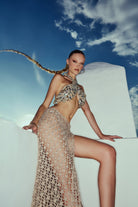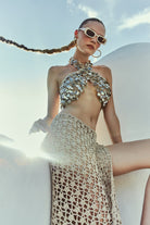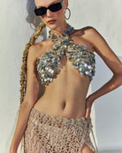 Llama la atención con nuestro top de nácar de Tulum. Este impresionante top cruzado presenta madreperla rústica natural bordada a mano con cristales y correas para los hombros adornadas. Cierre en espalda y lazo en cuello. El Top Tulum tiene una copa sin relleno para un mejor soporte del busto y seguridad.