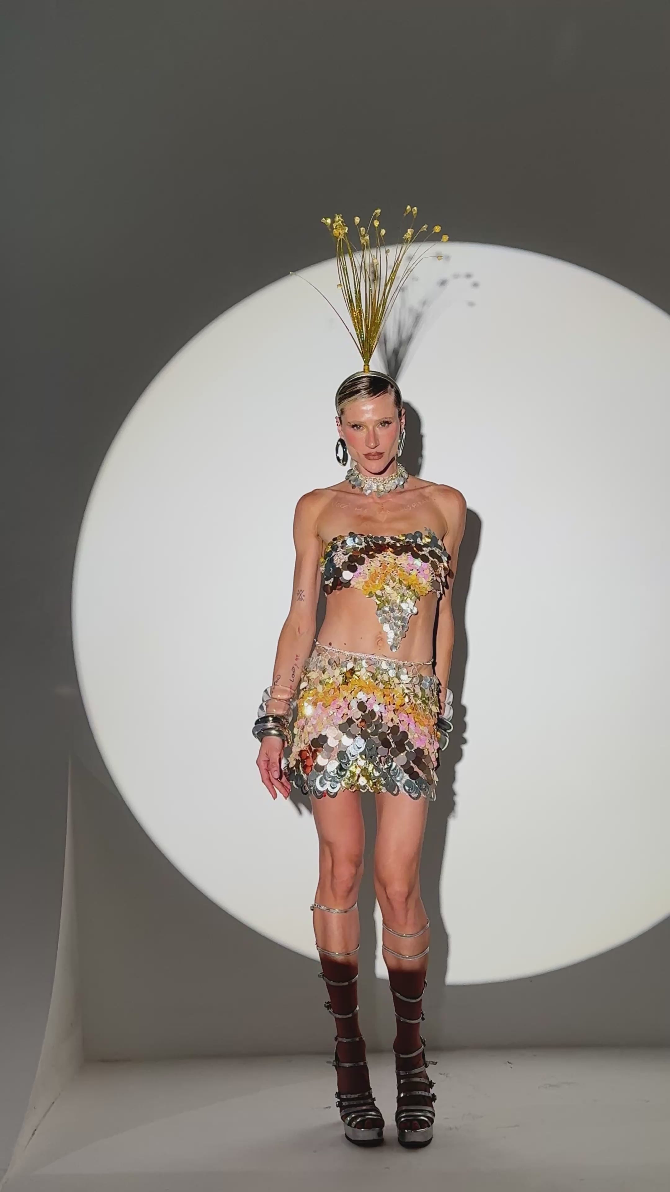 Utilice el Axé Choker con el Axé Top y la Axé Falda.