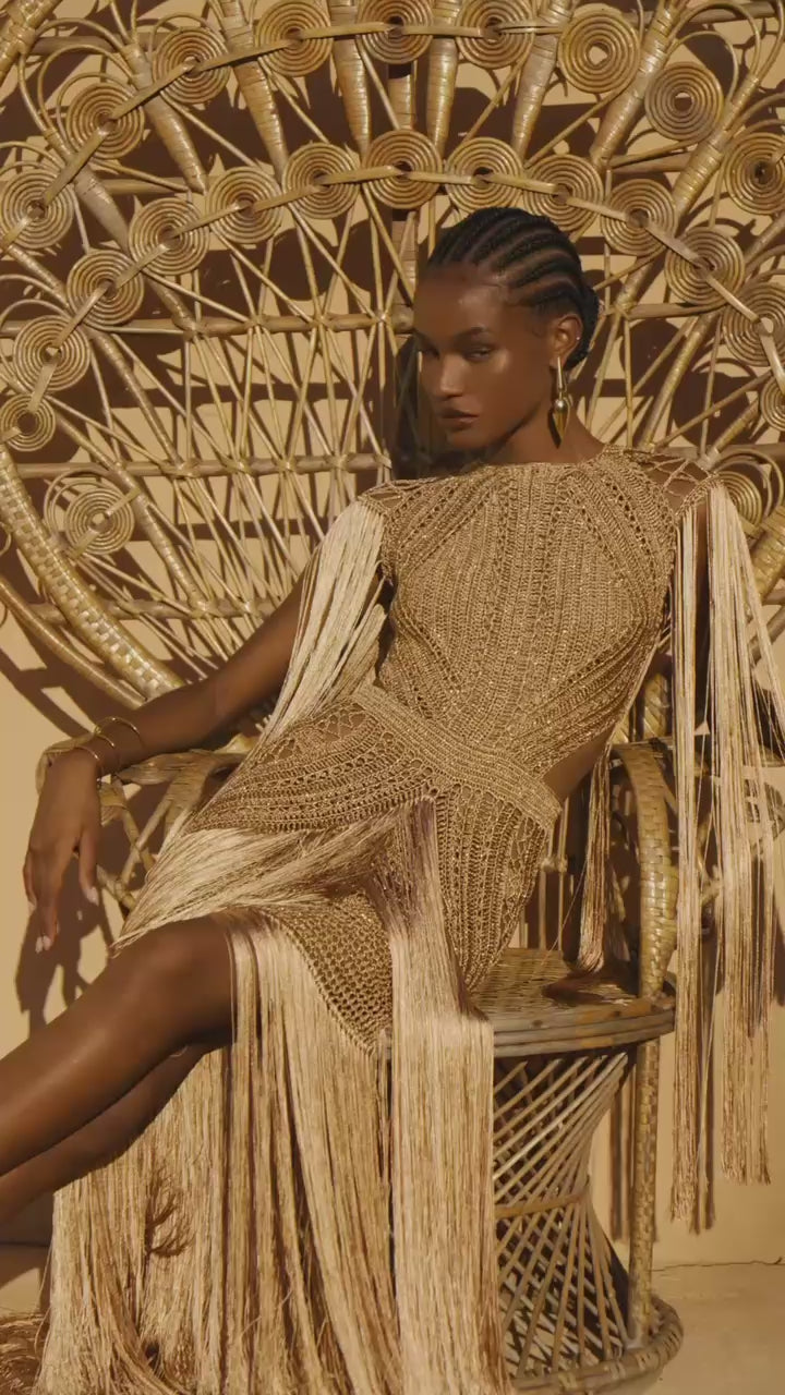 Dress with a bold and modern design, which exceeds all expectations of crochet modeling.